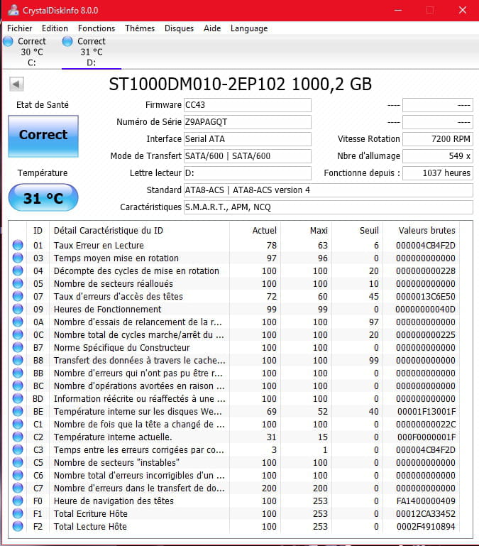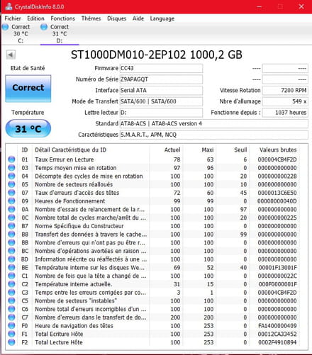 J'ai un deuxième disque dur Seagate de 1to qui lui aussi fonctionne bien et mon système d'exploitation est sur celui de 500GO.
