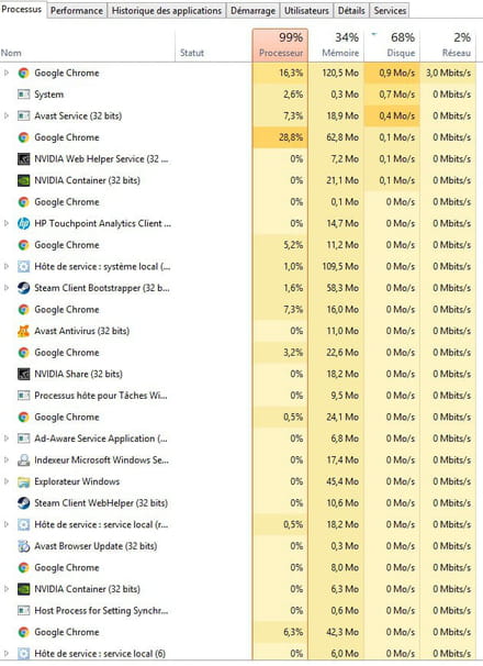 Processeur & Disque à 100%