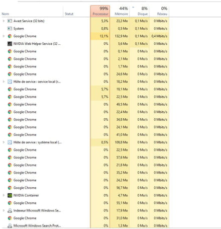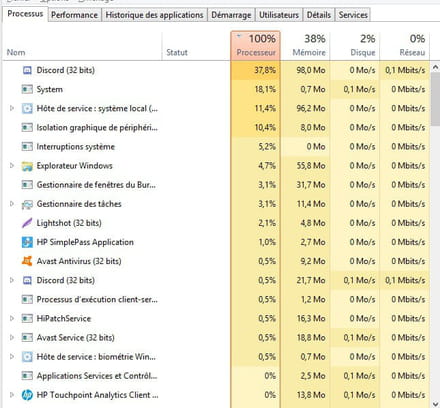 Je vous met aussi quelques screens de mon gestionnaire des tâches.
