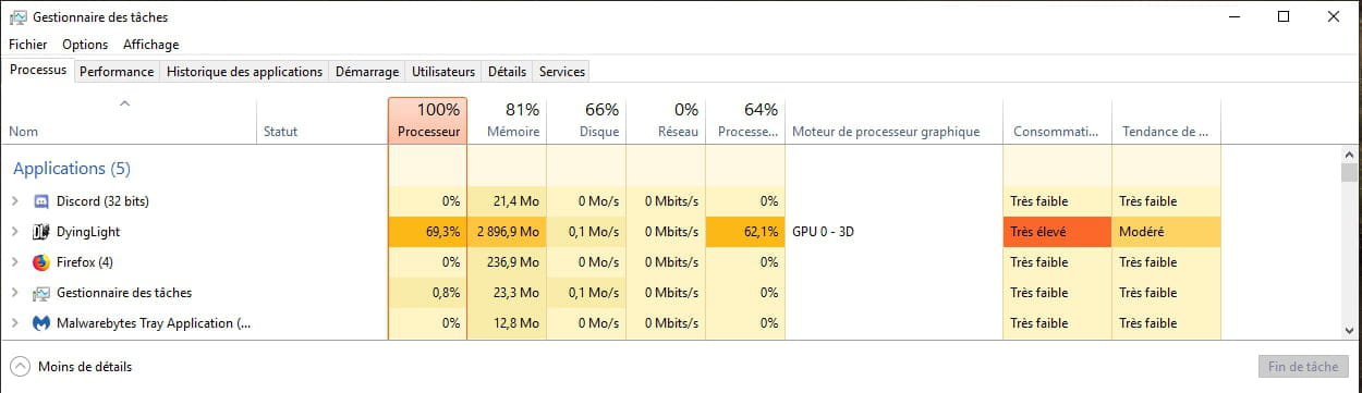 Lorsque tu joues, ton gestionnaire des tâches (taskmgr), indique quoi sur les ressources utilisées (CPU, RAM et GPU) ?