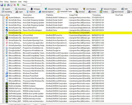 Si tu veux voir les items Windows dans Autoruns, tu décoches dans options Hide Microsoft et Widnows entries, mais plus tard, quand tu connaitra bien ton système..