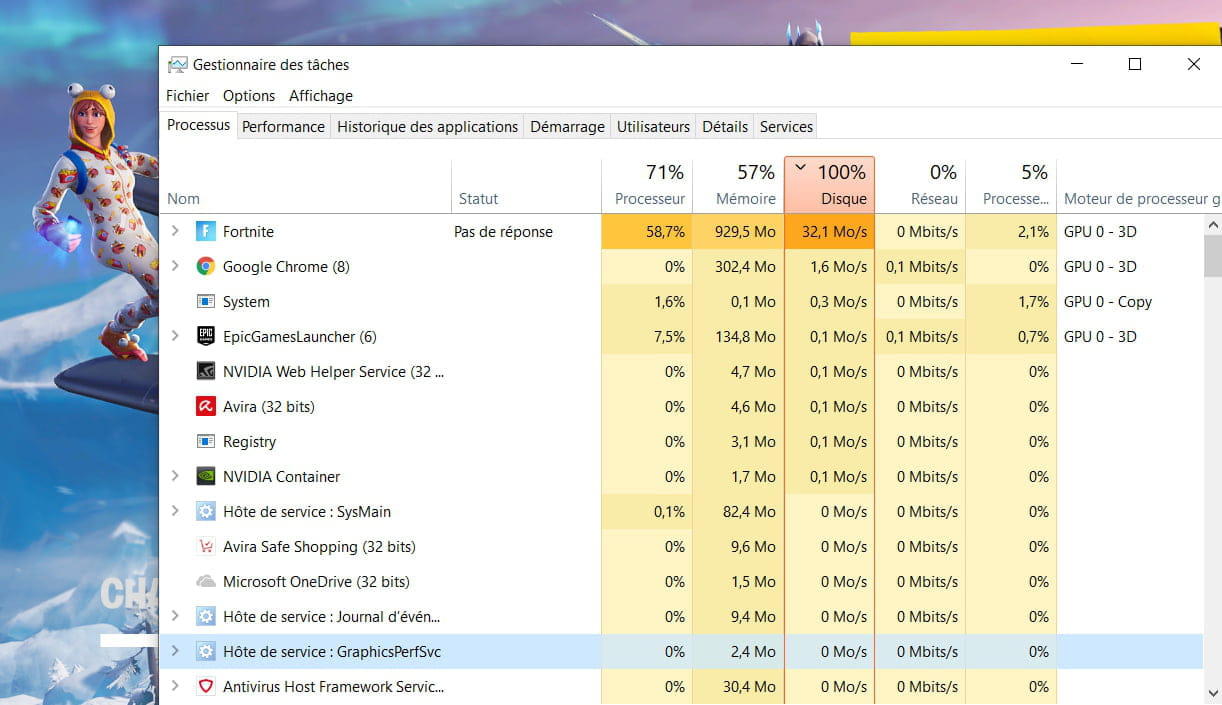 Tu pourrais aussi désinstaller Avira si ça ne va pas mieux après avoir fait du ménage dans tes processus qui tournent pour rien.