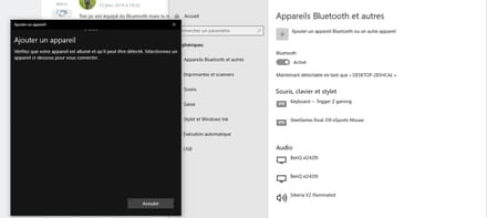 J'ai voulu activer le bluetooth et rechercher un appareil mais lorsque je souhaite ajouter un appareil il en trouve pas, "Vérifiez que votre appareil est allumé et qu'il peut être détecté. Sélectionnez un appareil ci-dessous pour vous connecter".