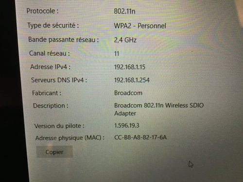 Bonjour, je viens d’acquérir une tablette Acer avec Windows 10 et depuis le début, le wifi se déconnecte au bout de une ou deux minutes. Des fois ça revient, mais la plupart du temps non. J’ai testé plusieurs manipulations proposées sur ce forum (économie d’energie, configuration isbb, conflit Bluetooth...) mais rien ne fonctionne. Quand je fais un diagnostic réseau windows, il indique « la passerelle par défaut n’est pas disponible ».