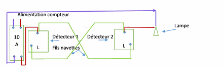 J'ai remplacer des va et vient (1 phase 2 navettes) dans mes escaliers par deux Interrupteurs à détection Infra rouge (2 fils) en placant un detecteur en bas et un en haut des escaliers, en suivant ce tuto :