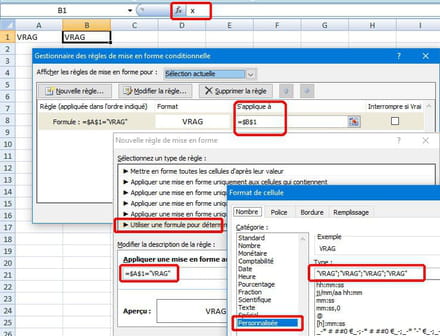 - si dans une cellule il y a le texte "VRAG", j'aimerais que dans une autre cellule en concret, aparaisse le texte "alba-1".