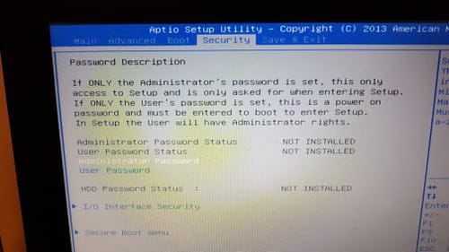 Voici quand-meme des photos des onglets Advanced, Boot et Security. Que dois-je faire si cela se reproduit ?