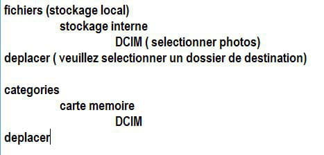 merci pour votre reponse mais cela n a pas resolu pas mon probleme ...les nombtreuses photos sont deja sur la memoire de mon tel car je n'avais pas mis la carte sd par defaut...maintenant je voudrais savoir comment faire pour basculer les photos de la memoire du tel vers la carte sd sans passer par un ordinateur..merci