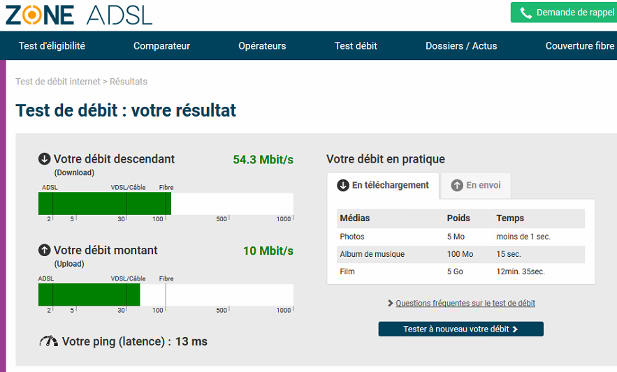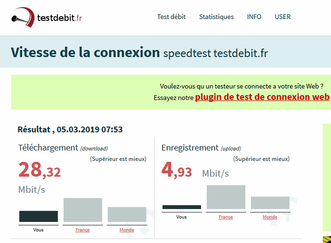J'ai lancé des tests de débit sur des sites internet, et ça donne ça :