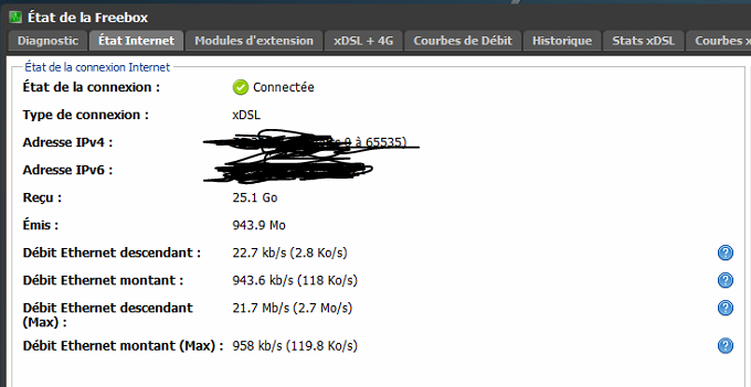 vous avez un débit de 21709 kbp/sen down et 958 kbp/s en up"