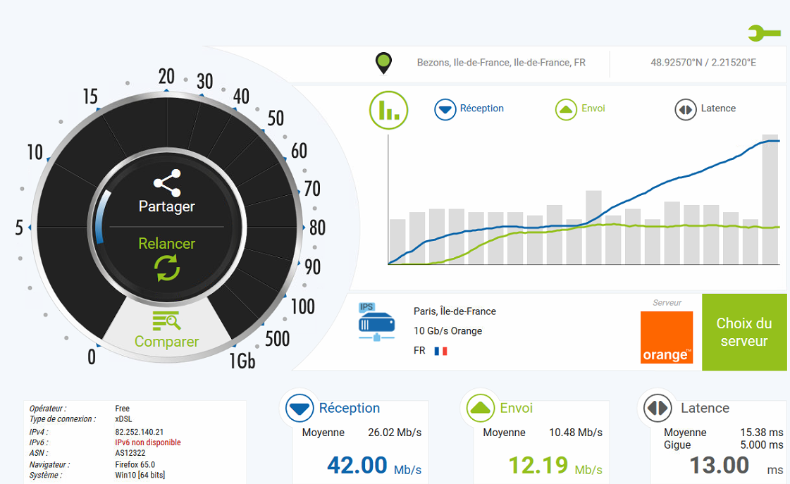 J'ai essayé speedtest, et j'ai eu ça :