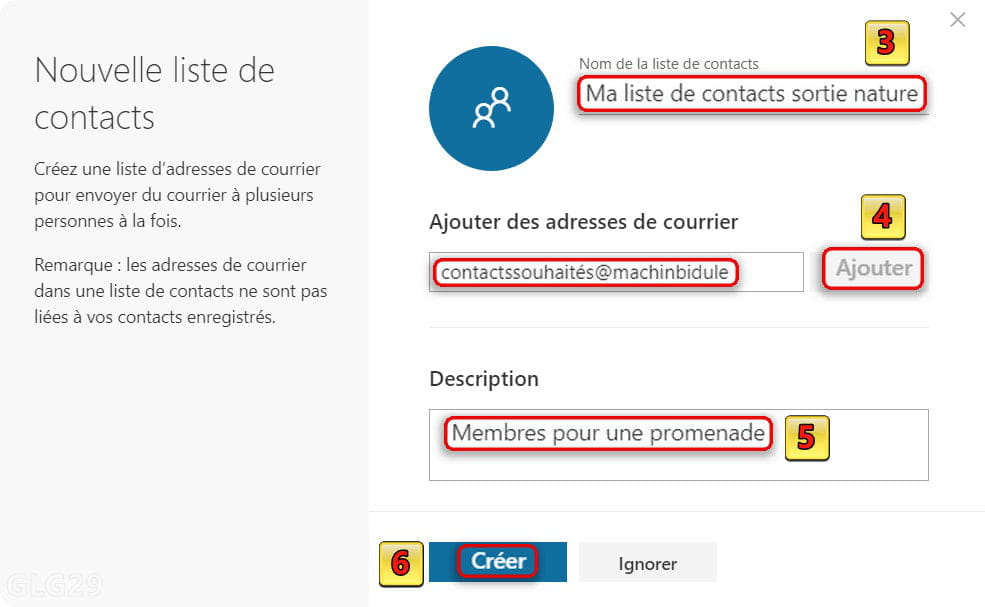 En 4, pour ajouter des adresses, tu tapes le prénom de la personne et tu devrais avoir une proposition d'adresse que tu valides.