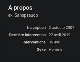 Signalons au passage, que bien que le profil soit bloqué côté modal¹, il apparaît toujours en tant que mémèbre contributeur ;-\