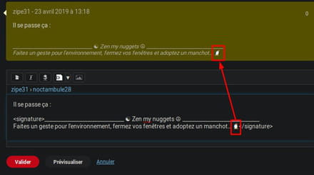 Par contre si je le rajoute en direct dans ma signure ci-dessous, il apparaît bien le bougre ;-)