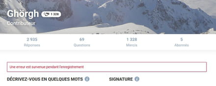 2) J'ai fait quelques tests en modifiant des éléments de mon profil, et je constate qu'ils ont pris en compte, pas compris le message d'erreur ?!