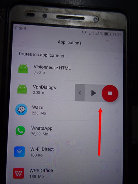 probablement enregistreur sonore.fais glisser en partant du haut de ton ecran et vois si tu as lancé cette fonctionnalité si oui arrêtes la