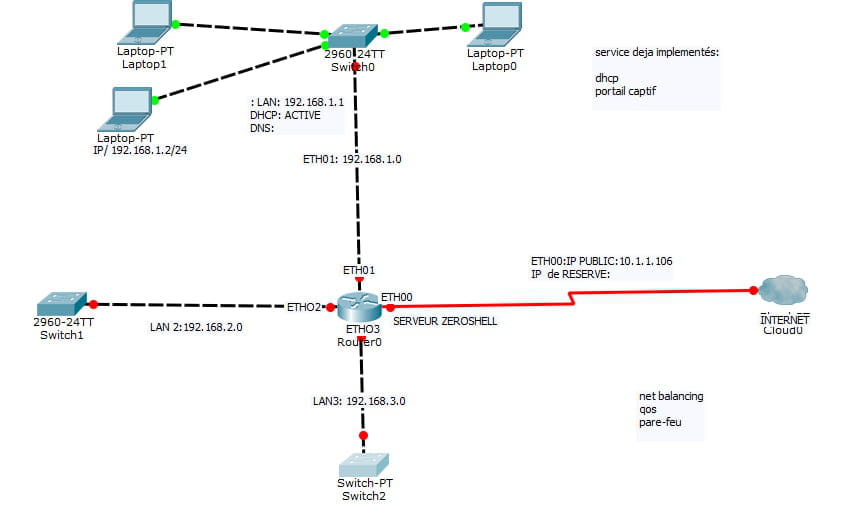 je dispose une connextion internet via adsl ( 192.24.222.201/30 DNS 8.8.8.8 ET 8.8.4.4 parcerell: 192.24.222.1)