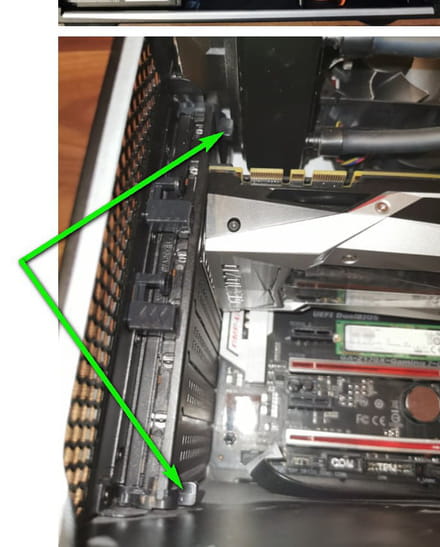 Bonjour, j'aimerai changer ma carte graphique et pour cela je dois la retirer, le problème c'est que j'ai beau regarder de plus près je ne vois aucune vis ! j'ai vu un millier de tuto et rien à faire je ne trouve pas ces vis voici quelques photos pour illustré !