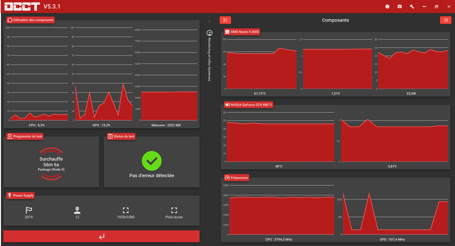 Voilà quelques temps maintenant que lorsque je joue (Csgo et BDO essentiellement), au bout d'une vingtaine de minutes mon pc se fige et je suis obligé de l'éteindre directement depuis la tour. Une fois rallumé et que je relance il finit par se refiger plusieurs dizaines de minutes plus tard. J'ai donc fait quelques tests pour savoir d'où venait le problème. J'ai desinstallé puis réinstallé les pilotes de ma gpu, de mon cpu puis je suis allé sur OCCT pour faire des tests plus approfondis. Cependant après avoir fait le test pour mon cpu et gpu cela n'a rien donné. J'ai donc essayé le test power supply et la au bout de 2 minutes le test s'arrête et me signale une surchauffe. Pensez vous qu'il y a une piste à creuser par la ? Ce que je trouve bizarre c'est que si le problème vient de l'alimentation alors pourquoi mon pc ne se fige pas lors des benchmarks/tests mais seulement en jeu.