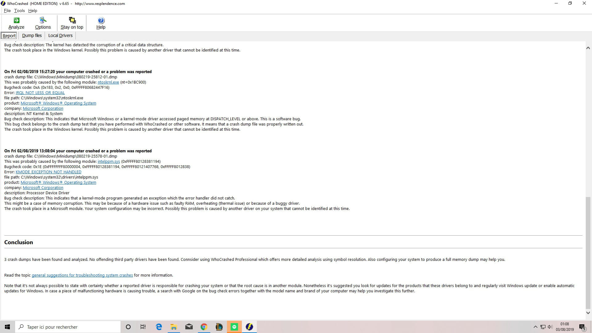 Dans ton dernier, c'est le pilote intel qui plante : intelppm.sys