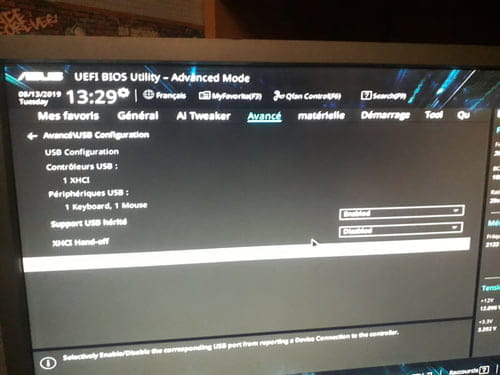 J'ai bien activé le legacy USB mais il me reste des options de la configuration USB qui restent en grisé.