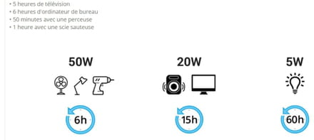 24h pour 100w : https://www.batteries-externes.com/batterie-220v-generateur-solaire-home-power/244-epow-eb240-2400wh-generateur-solaire.html