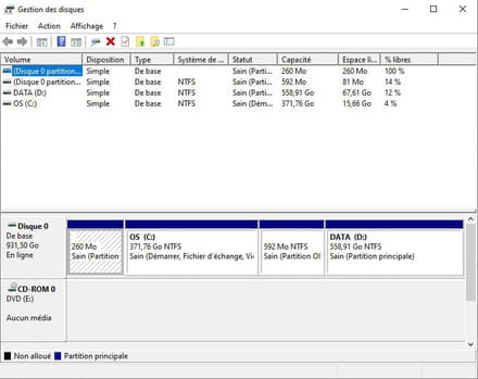 Votre capture d'écran est du gestionnaire de périphériques. Celle dont nous avons besoin est de la gestion des disques.