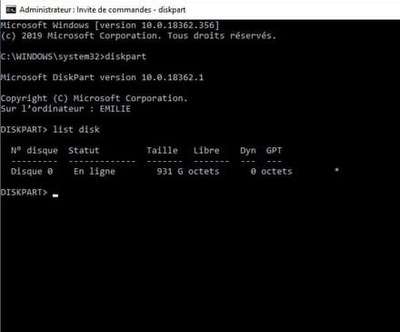 A un moment j'ai tapé plusieurs fois "list disk" et un autre appareil est apparu noté "inconnu". J'ai voulu refaire un screen propre (ah le perfectionnisme :/ ) du coup j'ai fermé l'invite de commande pour recommencer mais même en essayant plusieurs fois il n'apparaît plus.