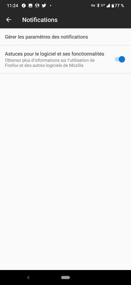 Mais je voudrais viré les notifications push de Firefox. Comme gearbest et d'autres sites de vente par correspondance. Dans paramètres, notifications, il ne m'affiche pas autres choses que le menu du paramètre système, car il me semble qu'il y avait un menu qui faisait l'affichage de tous les sites concernés par les notifications push Sur ce navigateur, peut être que ce n'est que la version PC ?