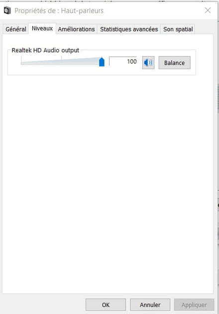 De plus, dans l'onglet niveaux des hauts parleurs, je n'ai que ça :