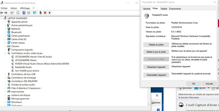 Désinstalle le pilote Realteck depuis le gestionnaire des périphériques.