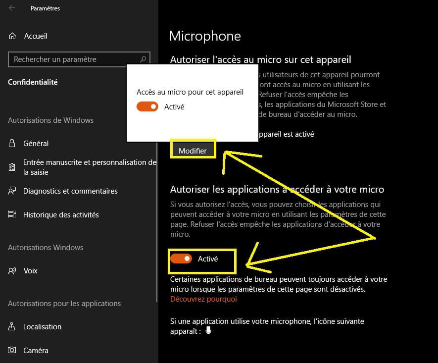 Maintenant, fais un clic droit sur le microphone et sélectionne Activer.
