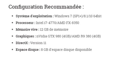 Pour info voici la configuration recommandée pour le jeu, j'espère que ce que j'ai correspond bien