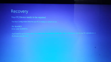 Apparemment, il s'agit d'un problème avec le Boot Configuration Data et il me faut télécharger des "recovery tools".