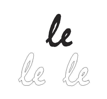 Dans cet exemple, les lettres "l" et "e" sont accolees, mais si on affiche en mode "'trace" on voit bien qu'il y a 2 surfaces differentes et dans ce cas, il y aura une decoupe entre les 2 lettres..