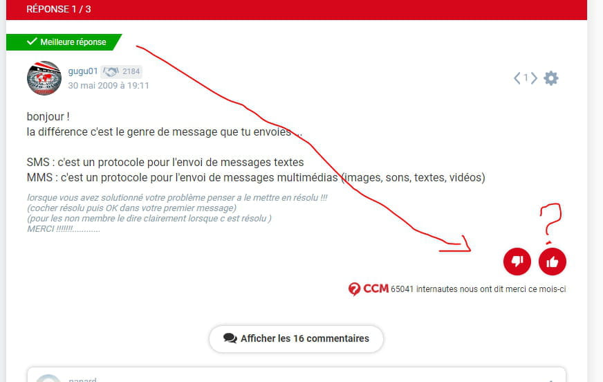 Là par exemple, tu vois pas le nombre de mercis : https://forums.commentcamarche.net/forum/affich-12667061-quelle-difference-entre-mms-et-sms#1 ??