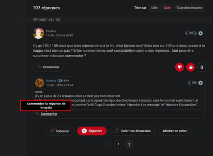 Commenter la réponse de base ou un commentaire d'une personne, vue la dispo tout sera en com du com précédent.