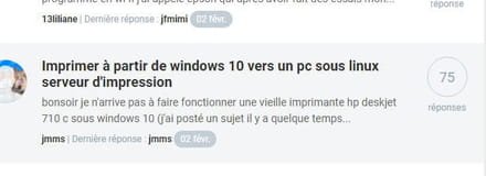 mais....l'imprimante fonctionne bien à partir du pc linux sur lequel elle est installée, mais n'imprime pas à partir de mon poste windows 10