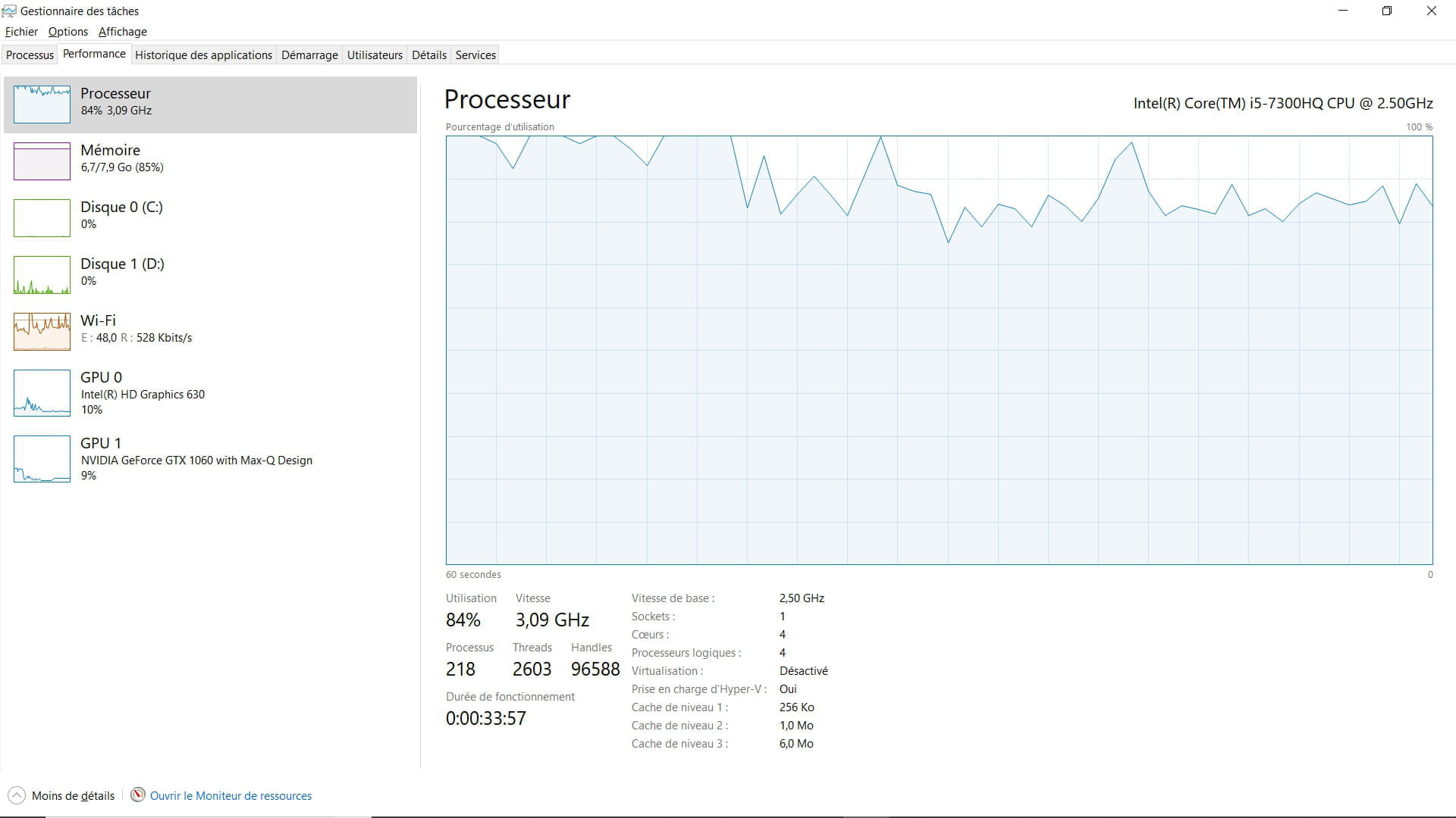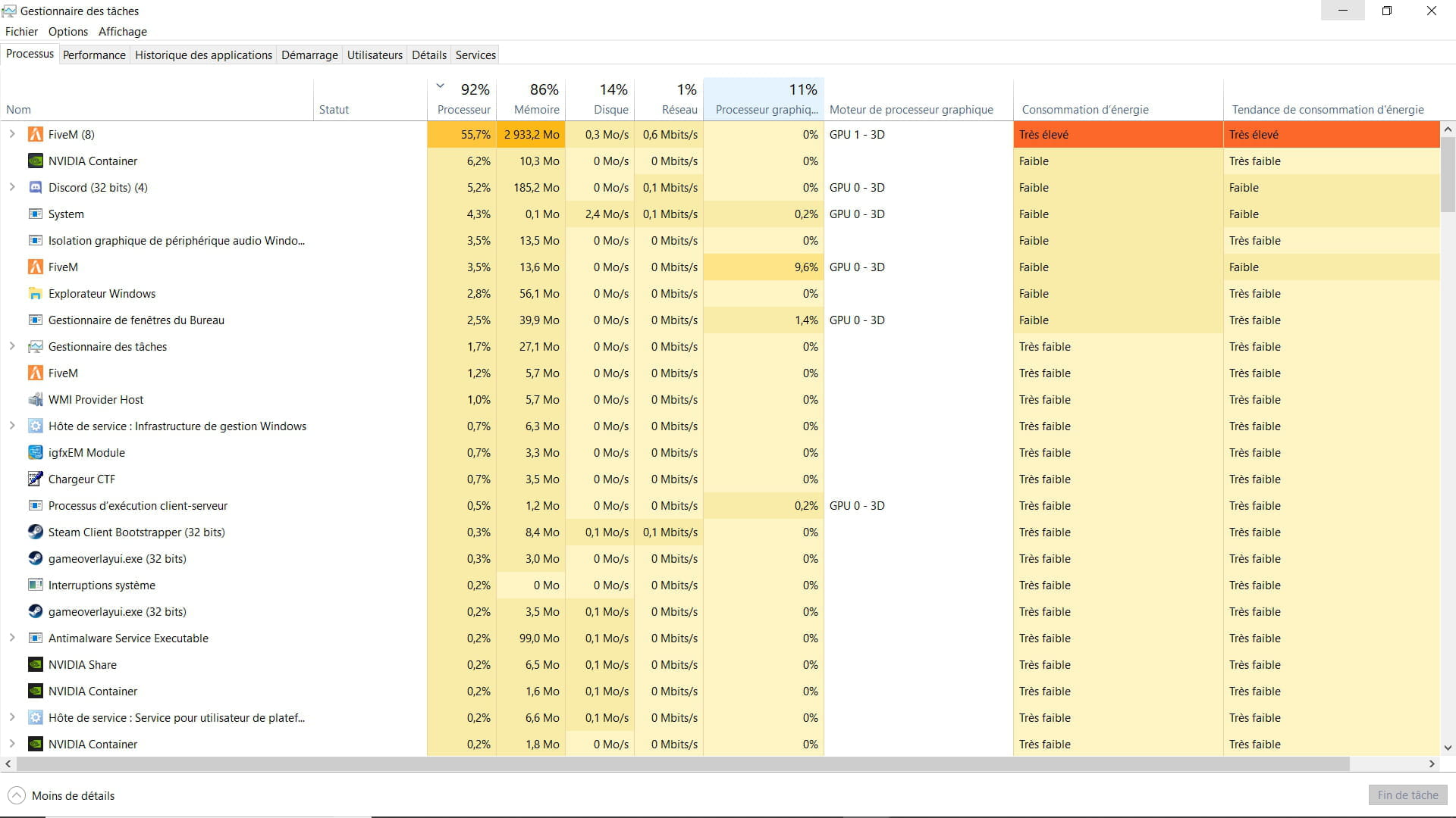 J'ai un I5-7300HQ avec 8GO de Ram et une GTX 1060 with Max-Q Design pourtant FiveM (GTA V) en Full low me prend 100% du processeur de la mémoire (gestionnaire des tâches) une idée svp ?