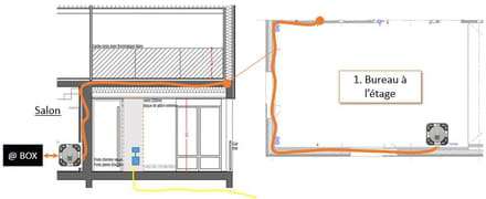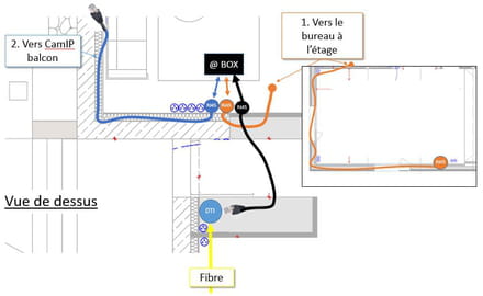 Mon souhait est assez simple: je vais avoir la fibre et je veux l'amener au salon où j'aurai la box (seront connectés 1 Nas, 1 projecteur, 1 PS5) et l'amener à l'étage pour un bureau. Je souhaite aussi connecter une camera IP en RJ45 à ma box.