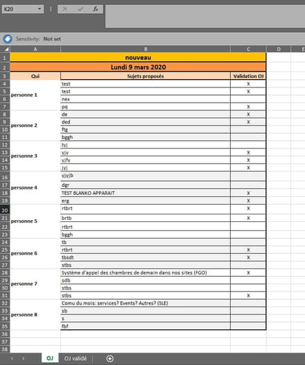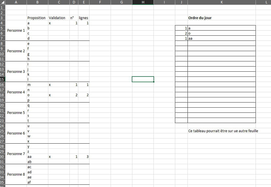 Ensuite ils sont validés par une personne tier qui inscrit des X (ou autre si plus facile) pour ceux validés.