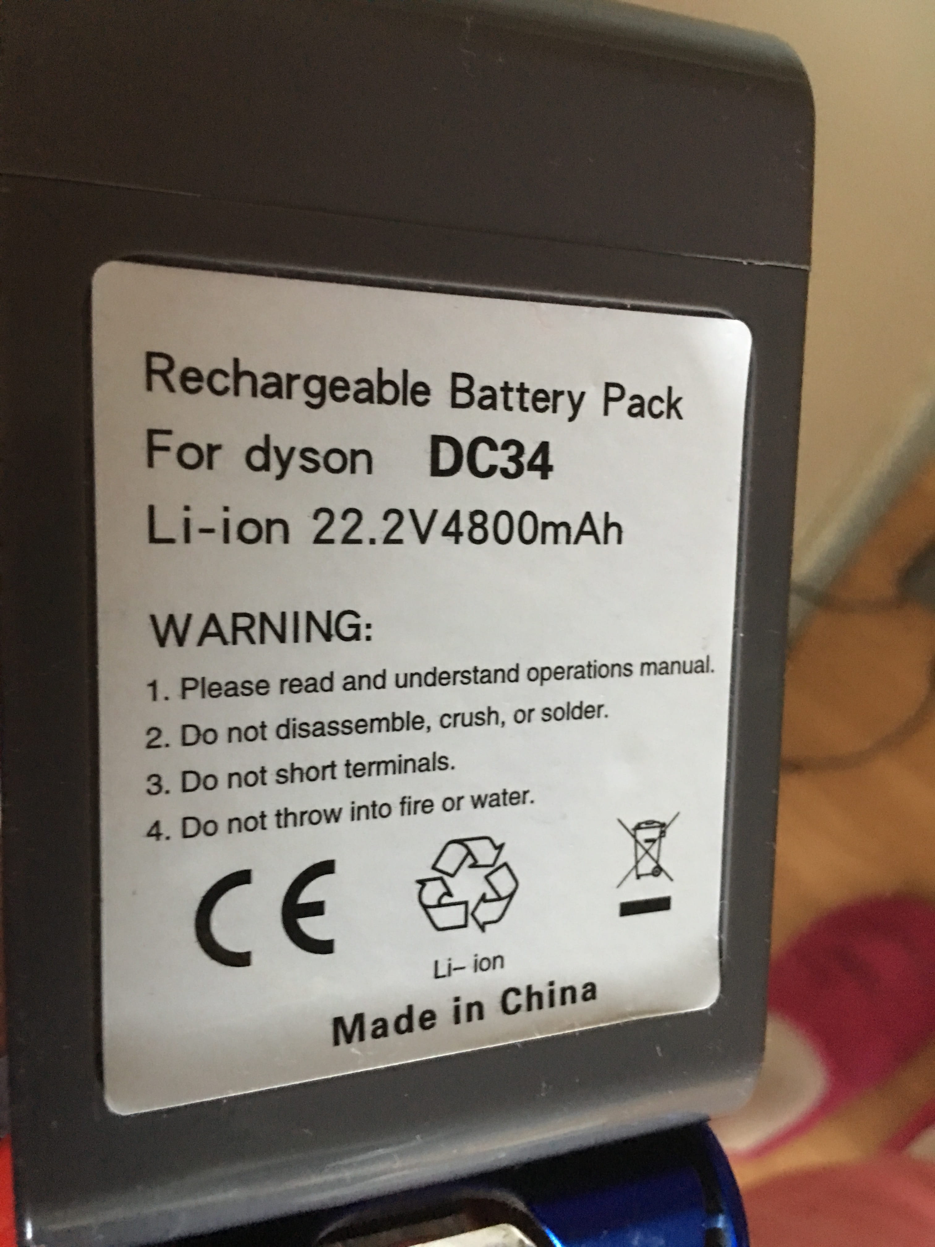 J’ai acheté une batterie pour mon aspirateur sans fil Dyson la batterie d’origine et 1300 MAh par contre la batterie que j’ai acheter Elle fait 4800 Mah Mon souci c est que la batterie ne se recharge pas avec mon chargeur initial de celui de 1300 Mah pourquoi ? Et comment faire svp ? Merci pour votre aide