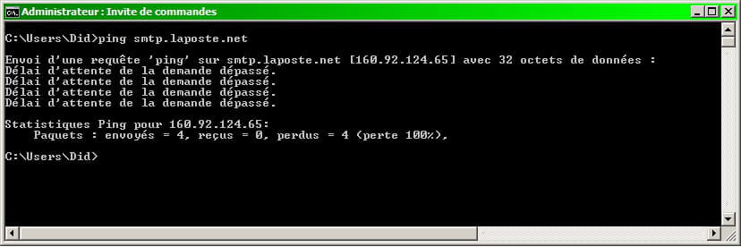 Et ici, on voit par exemple que le serveur smtp (envoi de mail) de laposte.net est en rade: