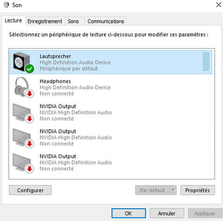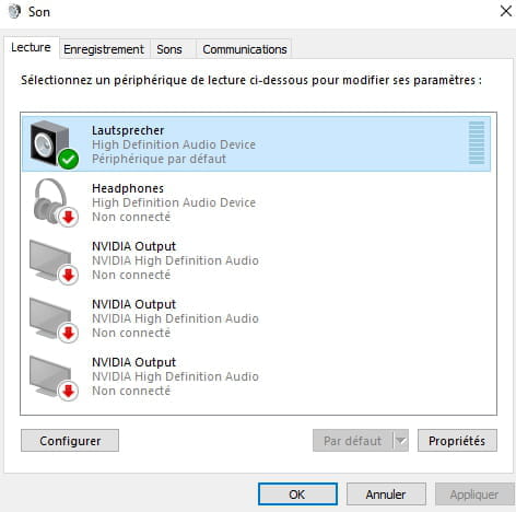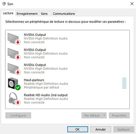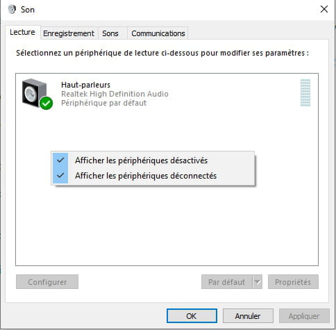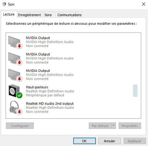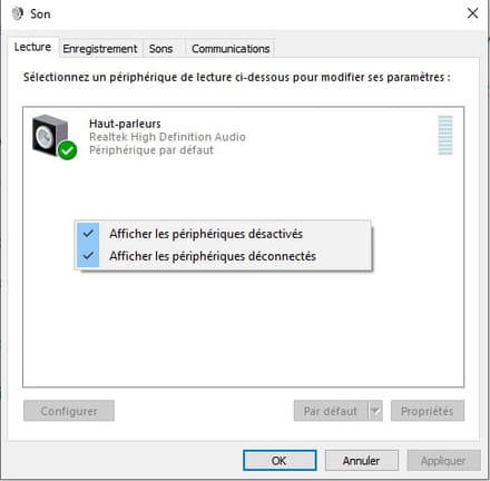 Donc, c'est Realtek High Definition Audio (haut-parleurs) qui est par défaut ?