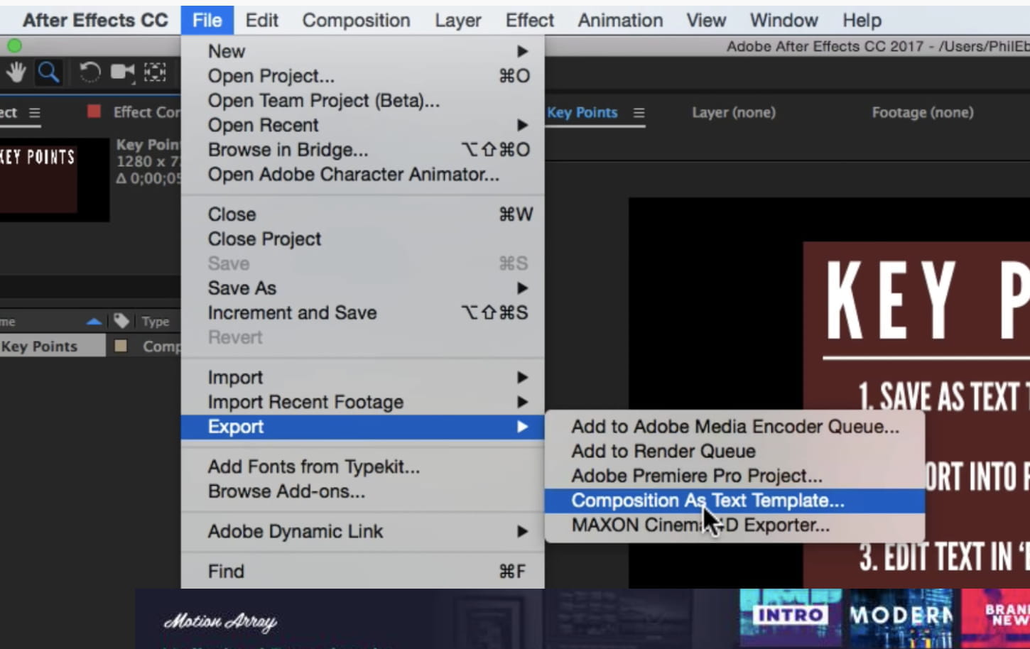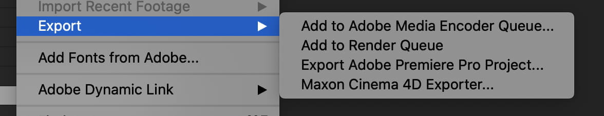 Alors en fait, la version 2020 de AE ne permets plus d'exporter de composition en tant que text template. Dorénavant, il faut créer un template de Motion Graphics. Je te mets un lien qui explique comment faire: