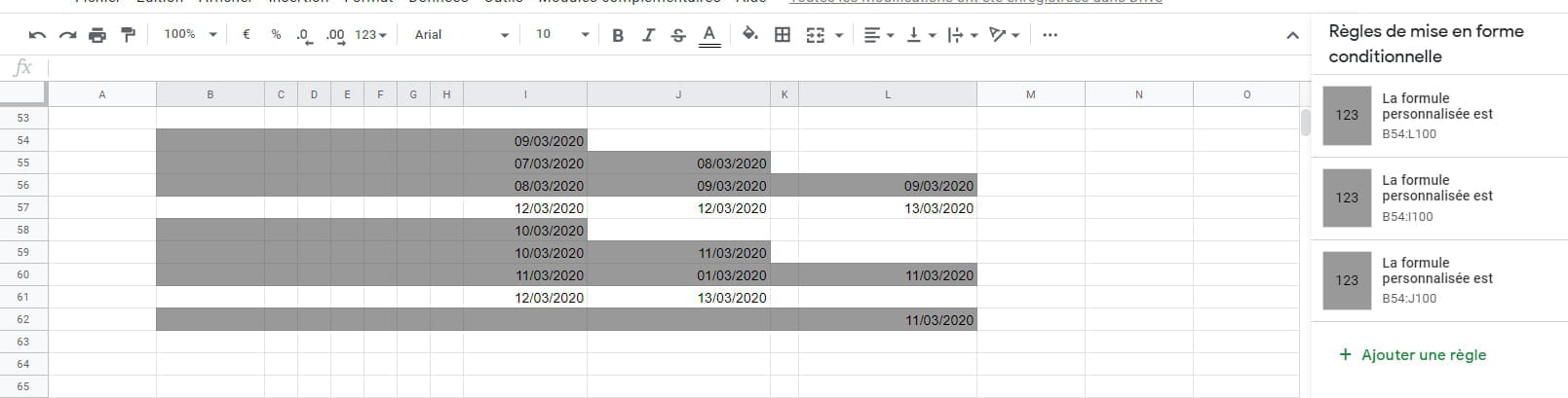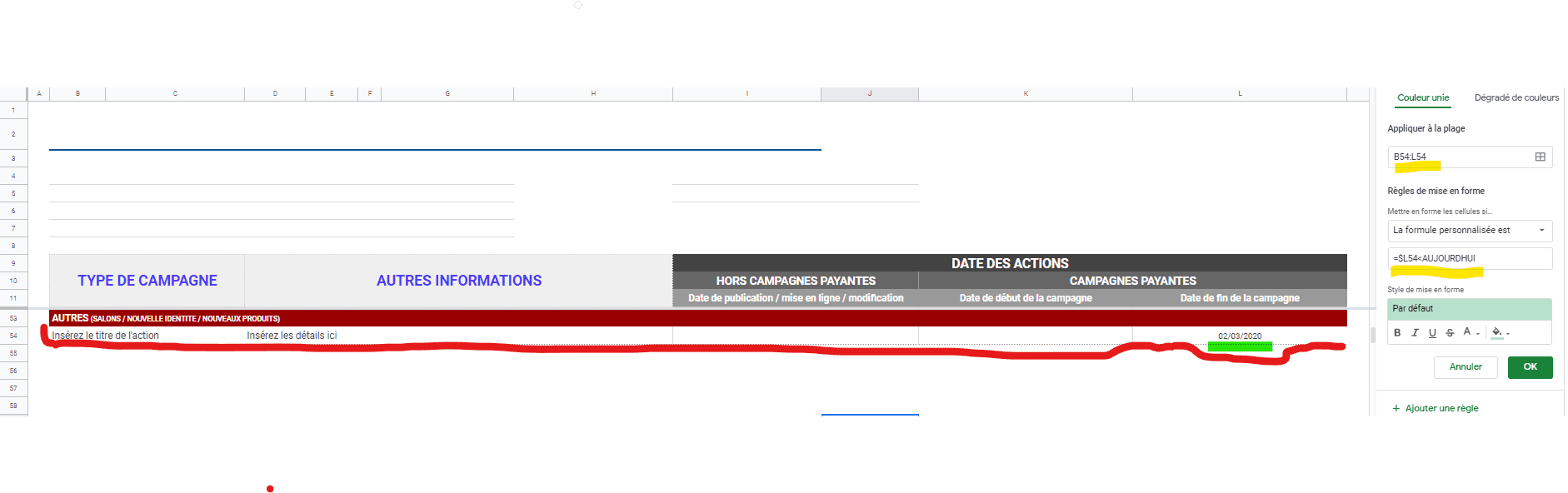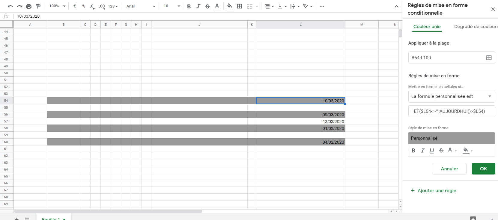 Google Sheets : Mettre en forme une ligne suivant une date passée ou non.