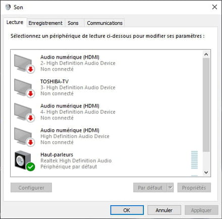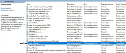 dans la page qui s'ouvre, regarde si l'audio Windows est actif et en automatique