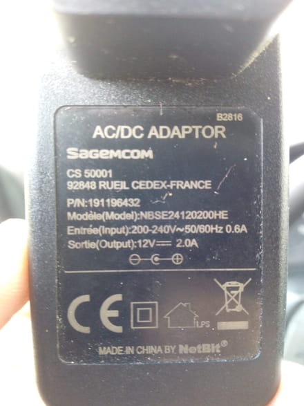 Je voudrais aussi être sûr que le "+" est au centre du petit connecteur DC qui va dans la Livebox Play, et le "-" à l'extérieur.