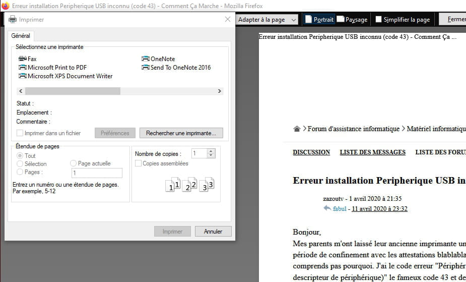 Quand je fait ça sa remet le même problème encore et encore sa sert a rien on dirai je comprend vraiment pas sur mon pc portable via usb l'imprimante marche tranquille