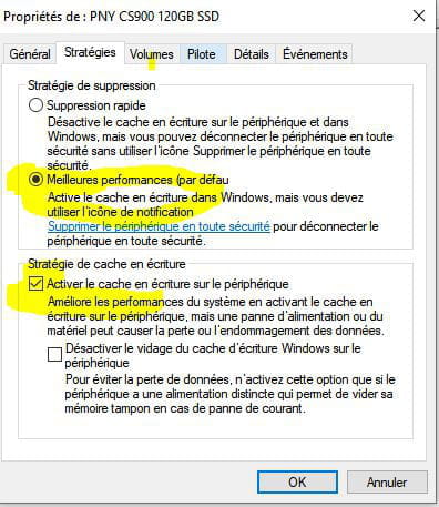 Oui oui le cache est bien activé, je cherche pourquoi les processus sature le processeur dès que je fais une tache, le processeur monte à 100% et c’est toujours les meme qui sont très haut. Vmiprovider, troggermode, windows defender, hôte de services, a tour de rôle ils montes jusqu’à 70% d’utilisation. Si j’ouvre juste un dossier et ba l’espace de 5 seconde c’est à 100%. J’ai passé un anti malware et fait un scanner anti virus mais rien....